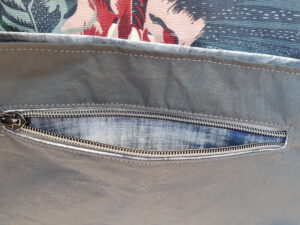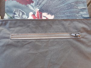 Hinter der Klappe befindet sich ebenfalls ein kleines Reißverschlußfach. Im Inneren gibt es 2 Steckfächer – der Clou – in einem Steckfach versteckt sich ein geheimer Reißverschluß.