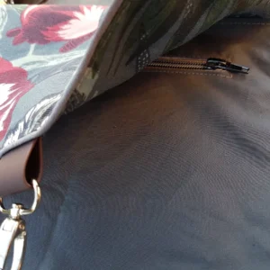 Auf der Rückseite befindet sich ein kleines Reißverschlußfach, in dem Handy oder Schlüssel sicher verstaut werden können und schnell griffbereit sind.