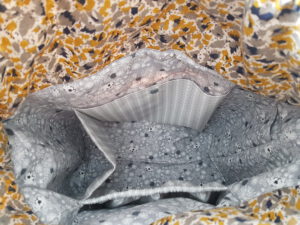 Ella ist aufgrund ihrer Größe vielseitig einsetzbar. Sie kann als eine Tasche für Handarbeiten, als Picknicktasche, als kleine Reisetasche, und vieles verwendet werden.
