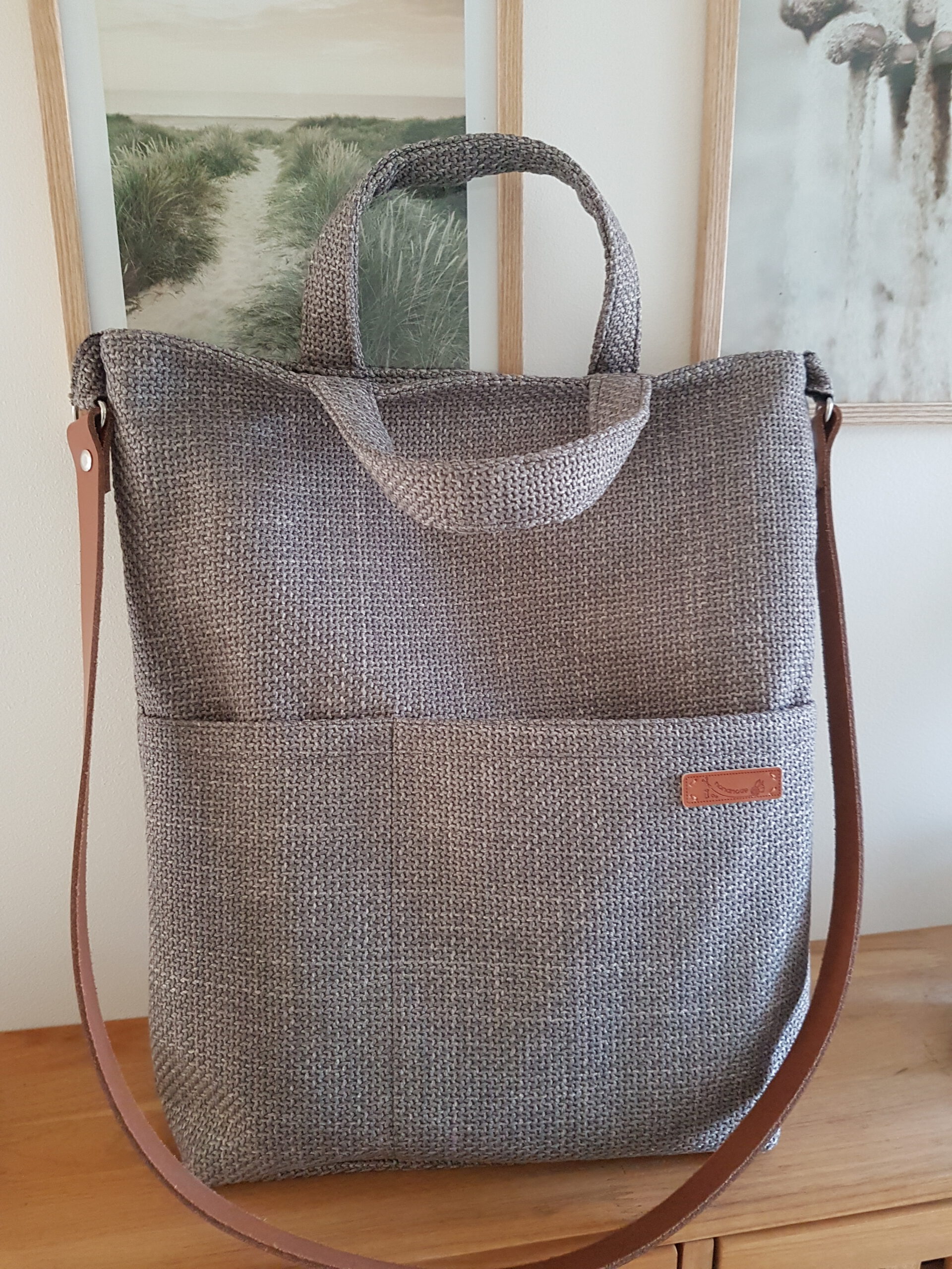 Die Tasche ist aus einem strapazierfähigem Möbelstoff gefertigt, der mit seiner markanten Webstruktur einen weichen und angenehmen haptischen Griff hat. Er ist robust, blickdicht und strapazierfähig.
